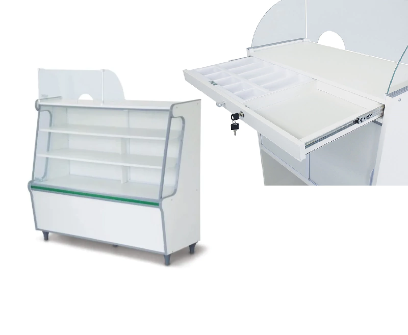 Balcão vitrine seca para exposição de produtos que não necessitam refrigeração. Compacto, funcional e elegante, com ótima visibilidade dos itens.