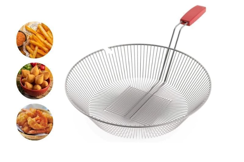 O Cesto Aramado para Fritadeira é produzido em arame galvanizado de alta resistência, garantindo durabilidade e excelente desempenho no preparo de alimentos fritos. Possui suporte plástico protetor de calor, que proporciona maior segurança e conforto no manuseio.