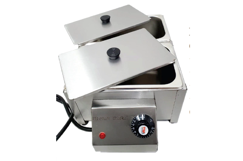 Derretedeira de chocolate com sistema de aquecimento por banho-maria, ideal para uso profissional e doméstico. Preserva as propriedades do chocolate e permite aplicações versáteis em cozinhas, confeitarias e até procedimentos estéticos.