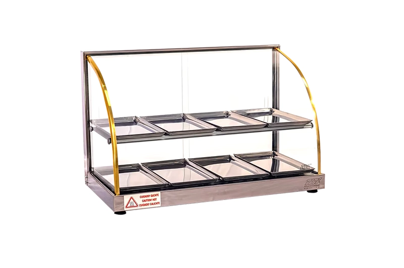 Fabricada totalmente em aço inox brilhante, possui bandejas internas em inox de fácil higienização e resistência blindada que garante maior vida útil e segurança no aquecimento. O termostato regulável permite controle preciso da temperatura, enquanto os vidros temperados em todas as laterais proporcionam ótima visibilidade dos produtos.