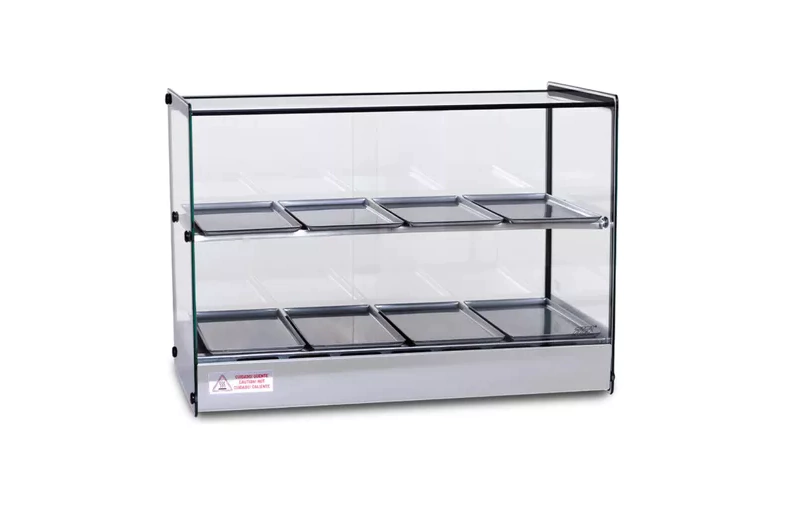 Estrutura fabricada em perfil de alumínio anodizado e aço inox; bandejas com dobras em aço inox; vidros laterais com serigrafia, tratados termicamente (não solta com temperatura); com todos os vidros temperados; termostato; resistência elétrica em aço inox 304 tubular; fiação elétrica com revestimento em silicone resistente a 300°C.