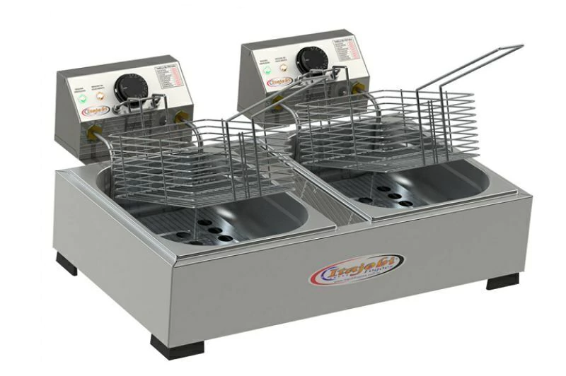 Com termômetro ajustável de 60 a 210°C, oferece controle preciso da temperatura de fritura, garantindo o ponto ideal para cada receita. Disponível em versões de 1 ou 2 cubas, funcionando em 127V ou 220V, cada cuba tem capacidade de até 4 litros de óleo, ideal para frituras de batatas, frango, peixes e muito mais.