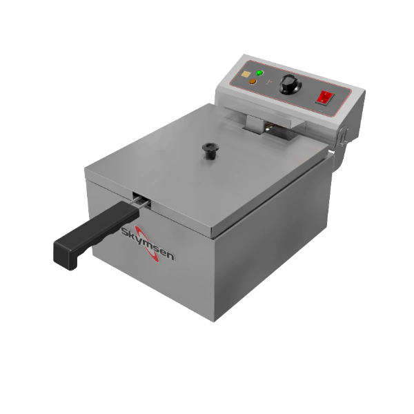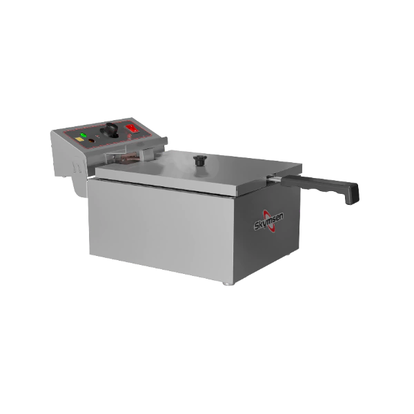 Compatível com redes elétricas de 220 V, a fritadeira profissional dispõe de tanque confeccionado em aço inoxidável com capacidade para 5 litros de óleo, cesto robusto confeccionado com arame estanhado, pega mão em plástico ergonomicamente projetado, luz que indica quando o óleo atingiu a temperatura correta e um prático sistema de escorredor que faz com que o excesso de óleo retorne ao tanque de fritura.