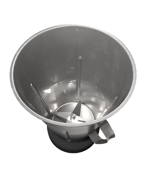Produzido a partir de uma peça única de aço inox e com formato em “V”, permite a formação de um vórtice que direciona todo o alimento para as lâminas, independente do volume, triturando de forma homogênea e em menor tempo. Sem soldas e sem frestas, possui cantos arredondados e por isso é de fácil limpeza e higienização, evitando o acúmulo de resíduos, uma das principais causas do mau cheiro e da proliferação de microrganismos. Possui tampa de borracha atóxica com dosador que garante boa vedação e a possibilidade de adicionar ingredientes durante o preparo.