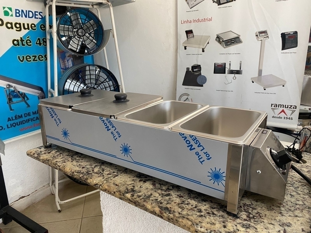 Banho-maria elétrico compacto, ideal para manter alimentos aquecidos com segurança e eficiência. Indicado para cozinhas profissionais que exigem praticidade e controle de temperatura.
